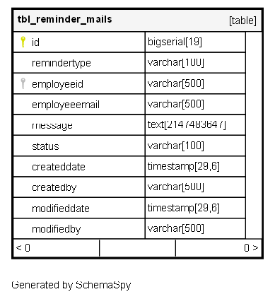 | id | bigserial | 19 | √ | nextval('tbl_reminder_mails_id_seq'::regclass) |