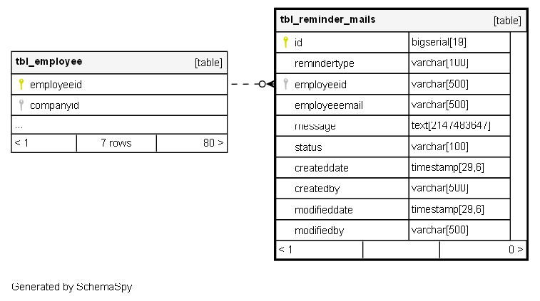 FK: public.tbl_employee.employeeid (Presumed Foreign Key) |