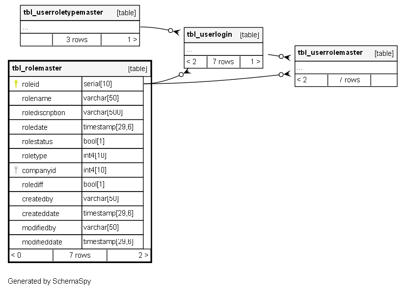 | roleid | serial | 10 | √ | nextval('tbl_rolemaster_roleid_seq'::regclass) |