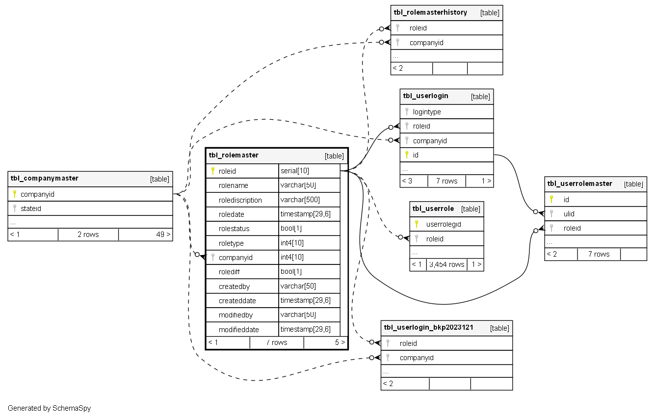 | tbl_rolemaster_pk_tbl_role | Primary key | Asc | roleid |