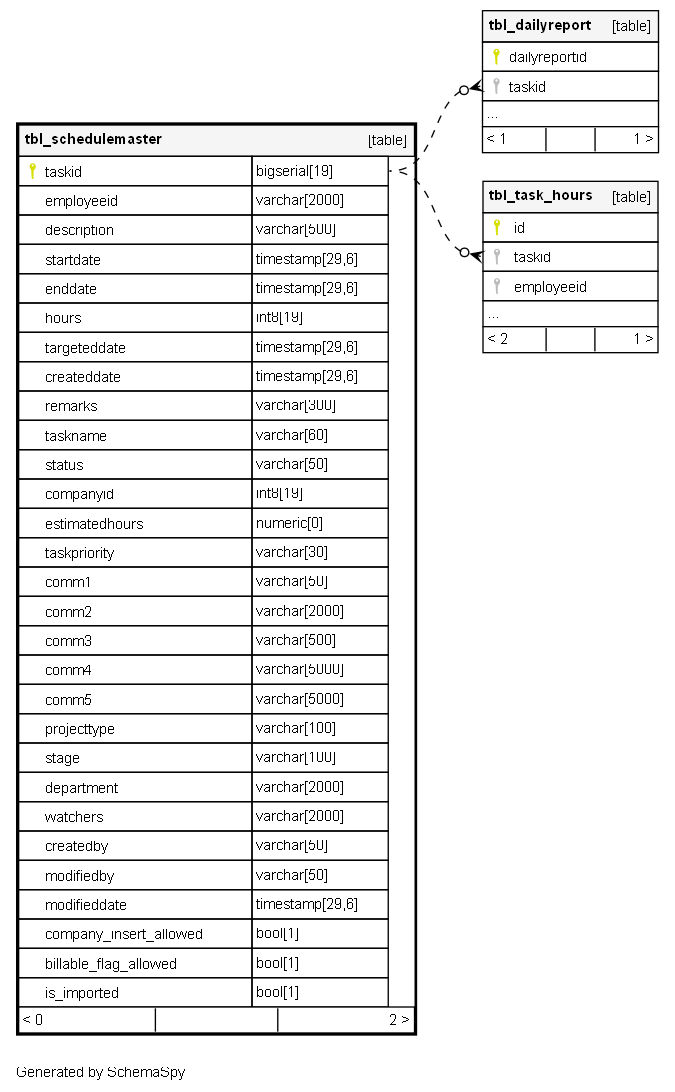 | tbl_schedulemaster_pk_tbl_schedulemaster | Primary key | Asc | taskid |