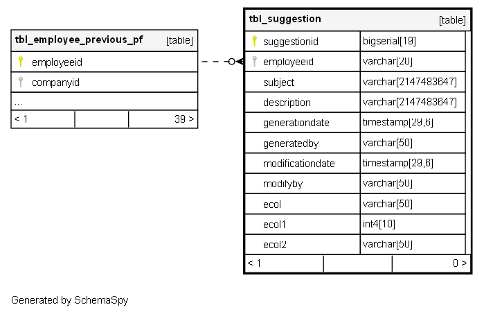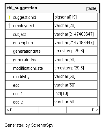 | suggestionid | bigserial | 19 | √ | nextval('tbl_suggestion_suggestionid_seq'::regclass) |