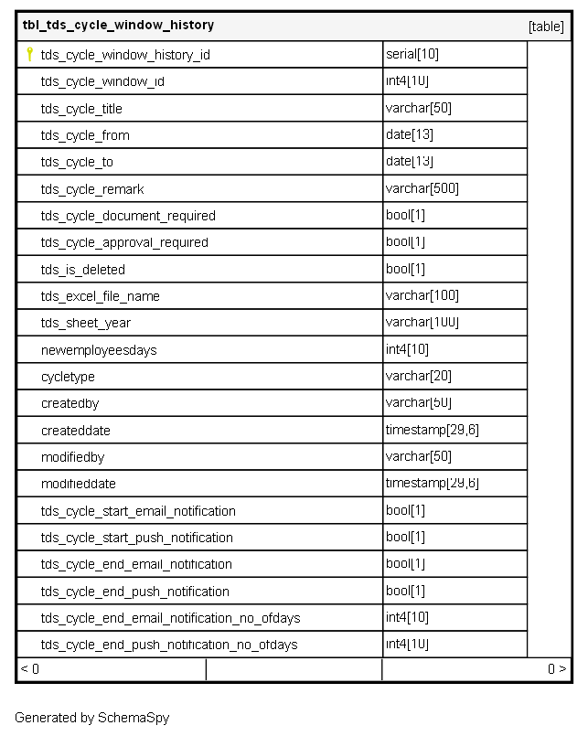 | tbl_tds_cycle_window_history_pk__tbl_tds___397f88e2c229f526 | Primary key | Asc | tds_cycle_window_history_id |