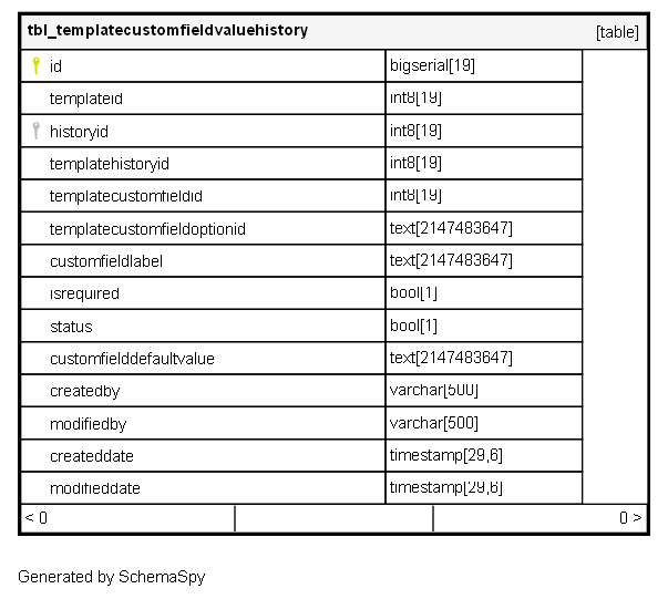 | tbl_templatecustomfieldvaluehistory_pk__tbl_templatecustomfield | Primary key | Asc | id |