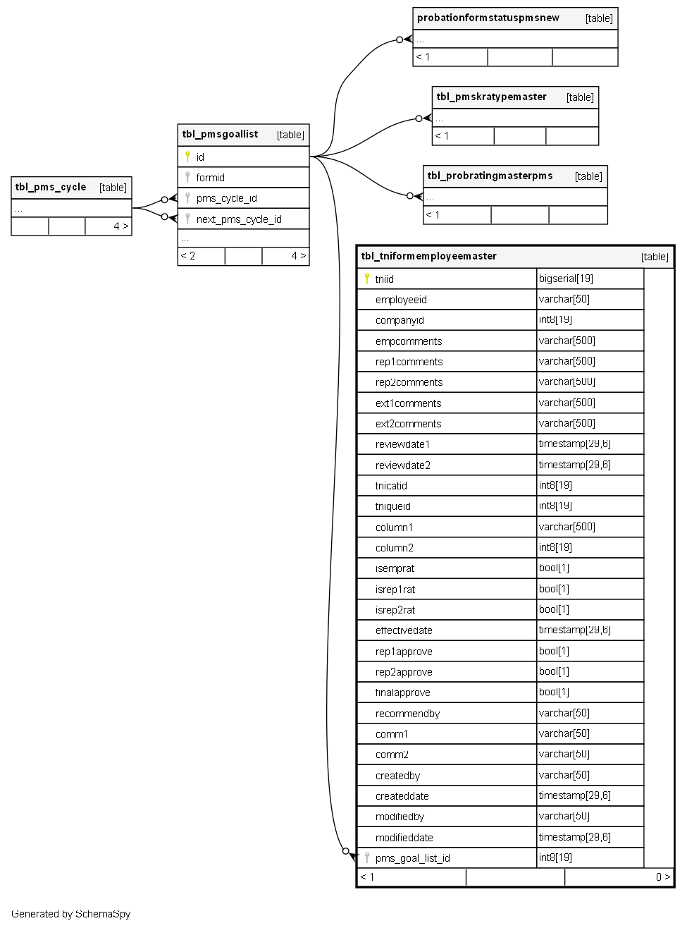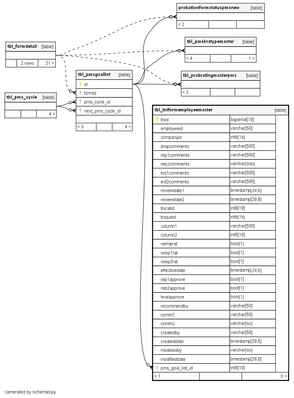 | tniid | bigserial | 19 | √ | nextval('tbl_tniformemployeemaster_tniid_seq'::regclass) |