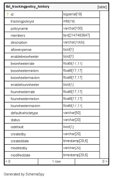 | id | bigserial | 19 | √ | nextval('tbl_trackingpolicy_history_id_seq'::regclass) |