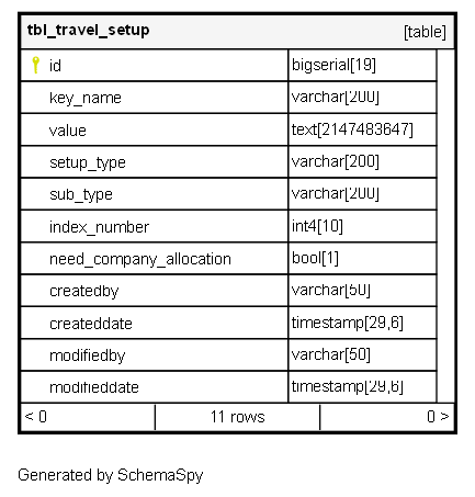 | pk__tbl_travel_setup | Primary key | Asc | id |