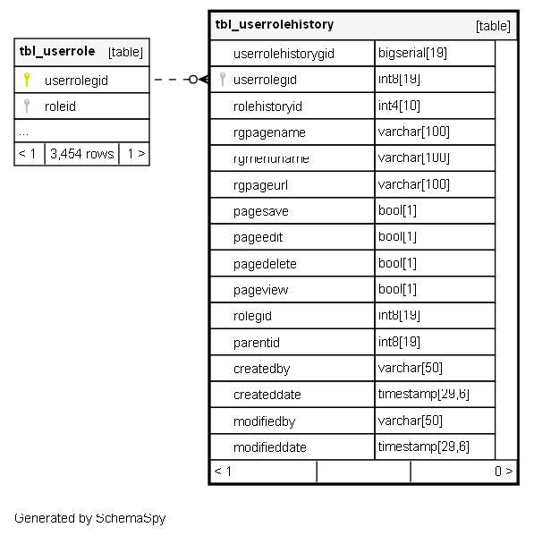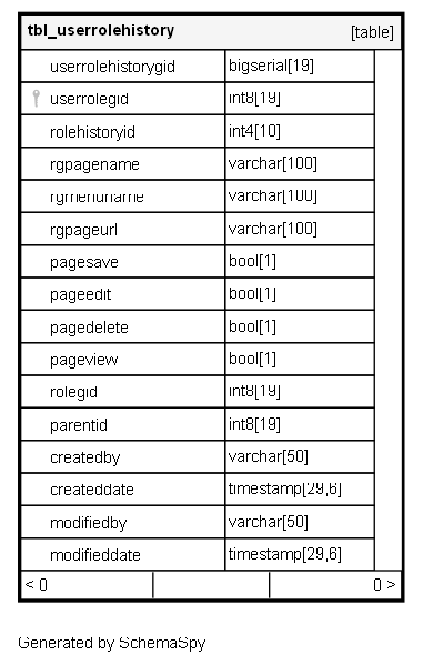 | userrolehistorygid | bigserial | 19 | √ | nextval('tbl_userrolehistory_userrolehistorygid_seq'::regclass) |