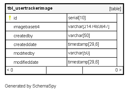 | id | serial | 10 | √ | nextval('tbl_usertrackerimage_id_seq'::regclass) |