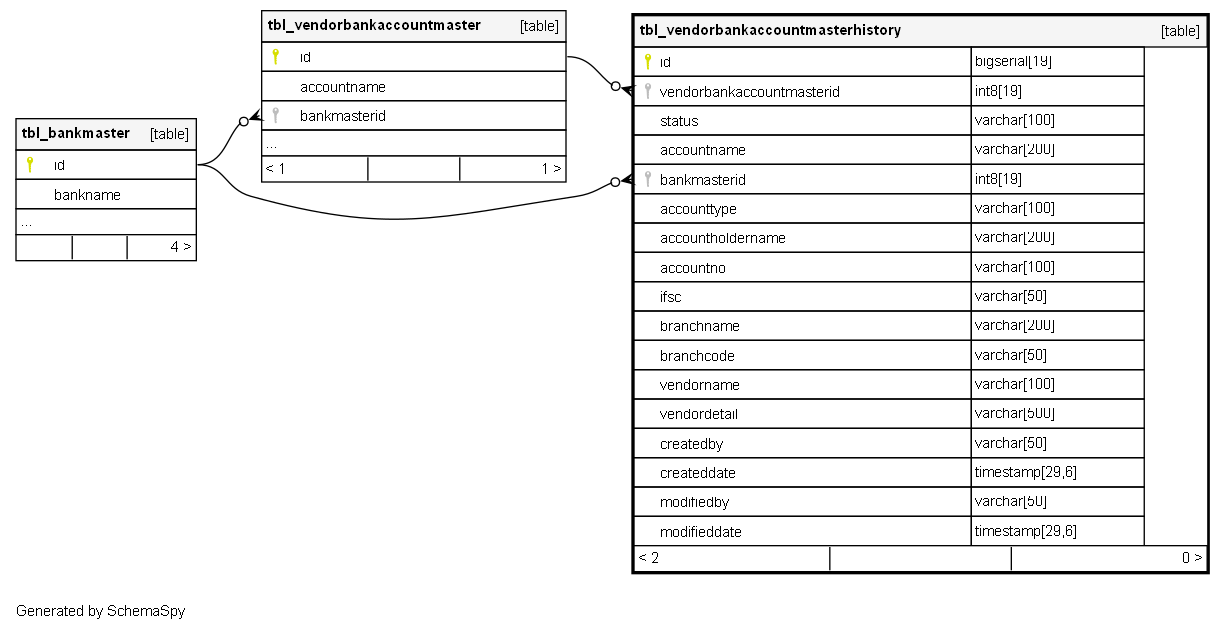 | id | bigserial | 19 | √ | nextval('tbl_vendorbankaccountmasterhistory_id_seq'::regclass) |