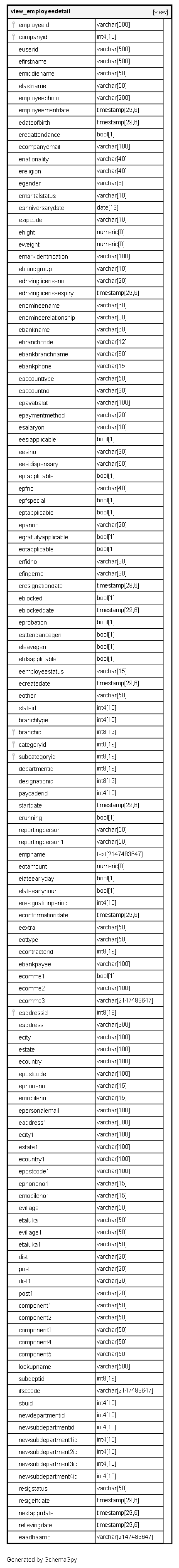 | employeeid | varchar | 500 | √ | null |